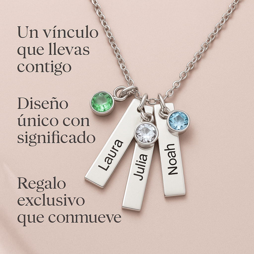 Este collar Raices Eternas no solo lleva nombres… lleva emociones, símbolos y momentos.