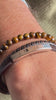 Inspirada en el equilibrio entre energía, elegancia y protección, esta pulsera une la resistencia del acero, la calidez de la piel trenzada y la fuerza del ojo de tigre.